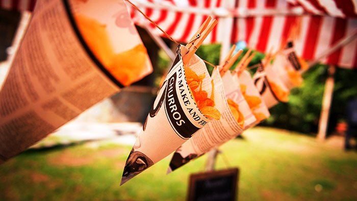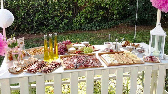 Es tracta d’un innovador menú, ideal per a gent activa que li agrada el bon menjar tot assaborint i gaudint de les converses i dels bons moments amb els seus. Ens agrada molt poder oferir aquest banquet a l’aire lliure on el sol de l’acabament de la tarda o la suau brisa de la nit acompanyen la festa. Petites taules cobertes amb tovalles i cadires de fusta per a tots els comensals. Paradetes amb una cuina feta a la vista del client, amb les tapes, els montaditos, els bufets de formatges, el pernil al tall, els fregits, els arrossos i cassoles de carn i peix, la barbacoa, el bar, l’assortit de postres amb pastissos, cupcakes fruita, sorbets i gelats. Tot això crea un ambient totalment allunyat dels casaments prefabricats.
