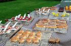 Compost d’un llarg nombre d’aperitius i servit al nostre jardí en diferents bufets temàtics. En acabar l’aperitiu passareu al jardí de les moreres, a la comoditat d’una taula ben parada decorada centres de flors o espelmes. Degustareu els plats de peix i carn que heu escollit, com sempre, fets amb productes de la zona. Finalitzarem el banquet amb un toc dolç amb un espectacular pastís fet pel nostre mestre pastisser.