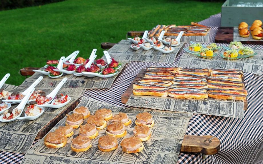 Es tracta d’un innovador menú, ideal per a gent activa que li agrada el bon menjar tot assaborint i gaudint de les converses i dels bons moments amb els seus. Ens agrada molt poder oferir aquest banquet a l’aire lliure on el sol de l’acabament de la tarda o la suau brisa de la nit acompanyen la festa. Petites taules cobertes amb tovalles i cadires de fusta per a tots els comensals. Paradetes amb una cuina feta a la vista del client, amb les tapes, els montaditos, els bufets de formatges, el pernil al tall, els fregits, els arrossos i cassoles de carn i peix, la barbacoa, el bar, l’assortit de postres amb pastissos, cupcakes fruita, sorbets i gelats. Tot això crea un ambient totalment allunyat dels casaments prefabricats.