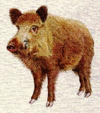 És el mamífer més gran de tot aquest territori. Menja aglans, bulbs, arrels, rizomes i petits invertebrats. En els darrers anys n’ha augmentat molt la població a causa de l’absència de predadors.