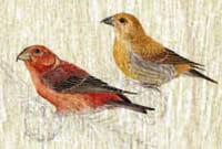 Ocell especialitzat en l’aprofitament dels pinyons de les coníferes, ja que és capaç d’obrir les pinyes amb el seu bec gruixut i fort. N’és característica la diferència de colors entre el mascle, vermell, i la femella, d’un verd grogós.